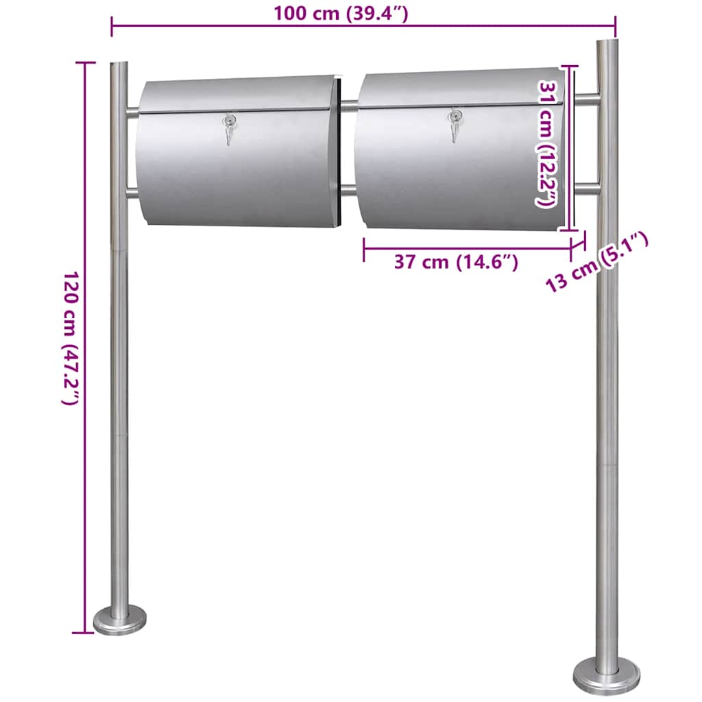 vidaXL rozsdamentes acél dupla postaláda állványon