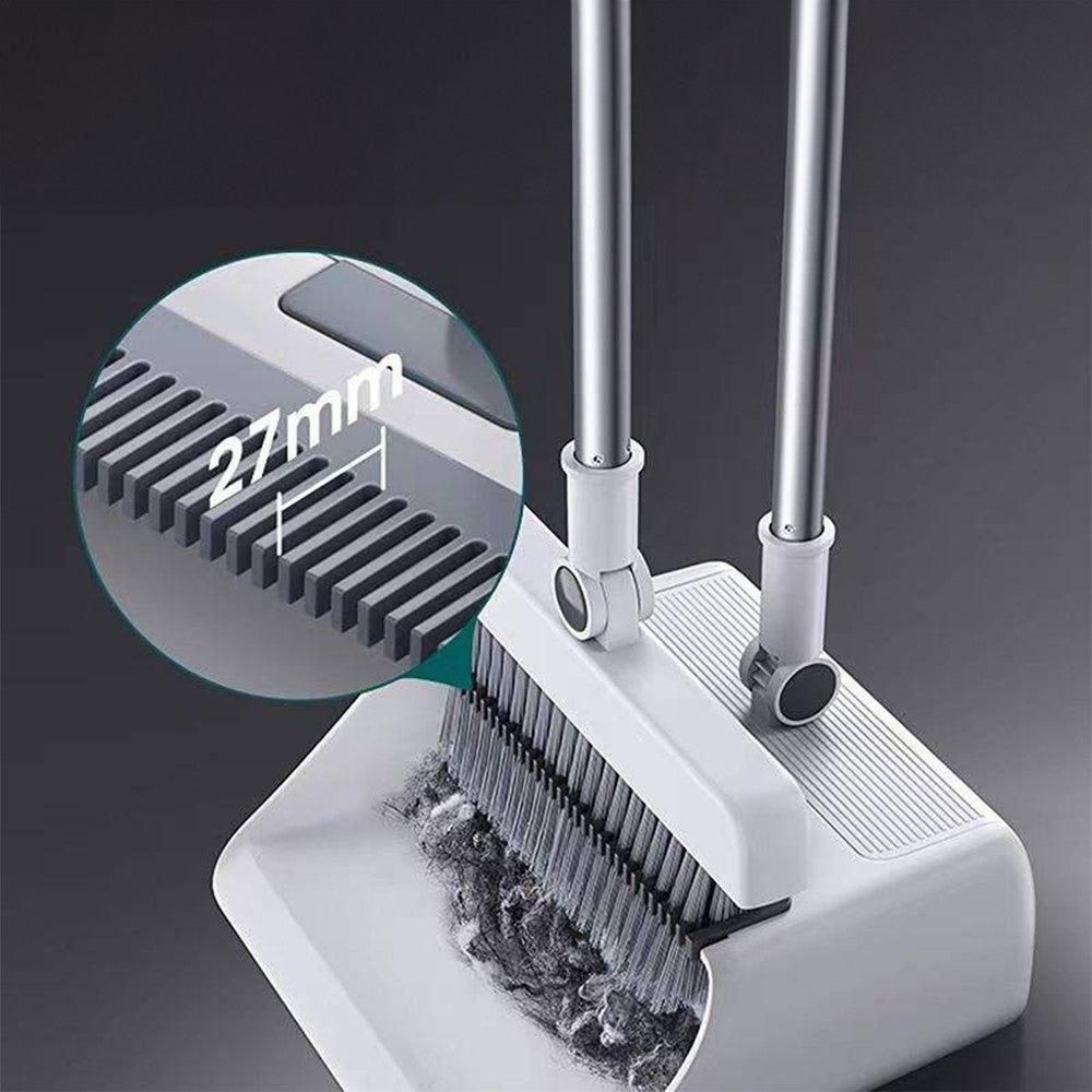 Vastag seprű: Az erős és tartós anyagból készült vastag seprű segítségével könnyedén szedhetjük össze a száraz és apró szennyeződéseket. A hosszú nyél kényelmes takarítást tesz lehetővé anélkül, hogy le kellejen hajolnunk.