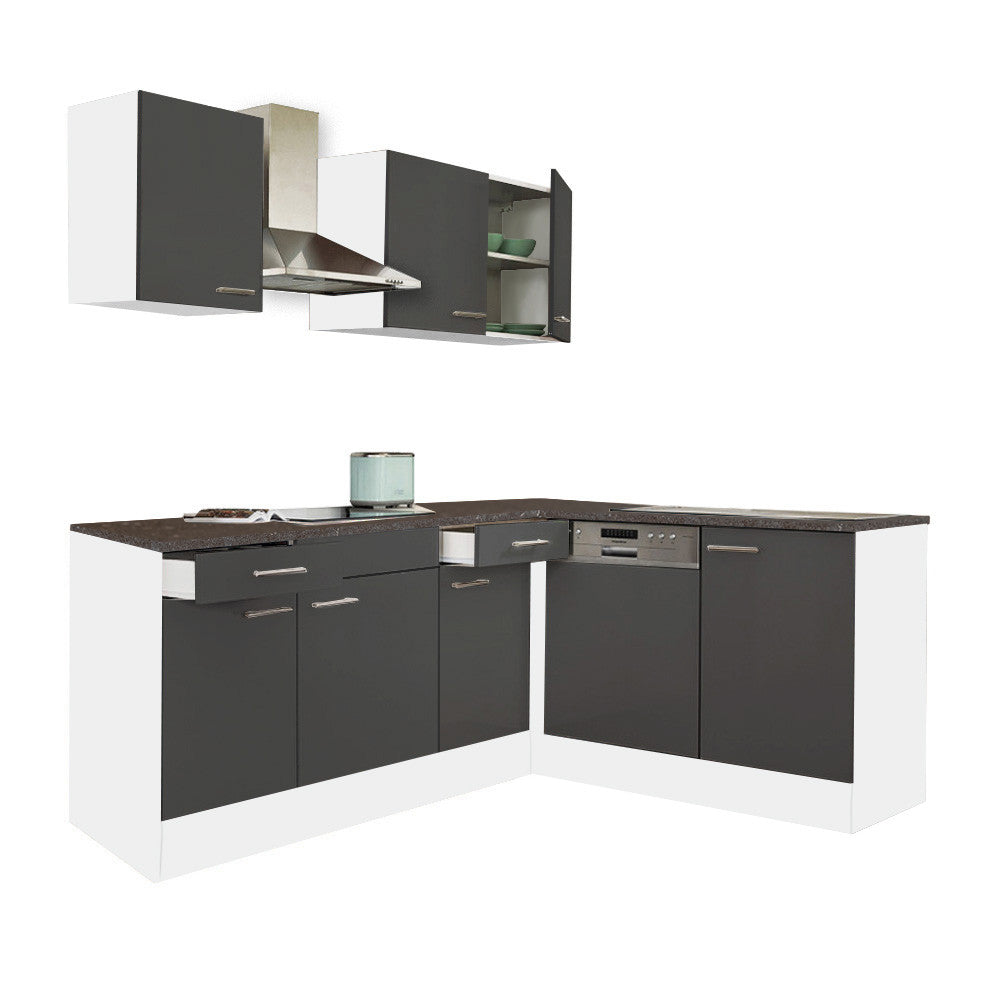 Yorki 220 sarok konyhablokk fehér korpusz, selyemfényű antracit fronttal. A tökéletes konyha megteremtője!