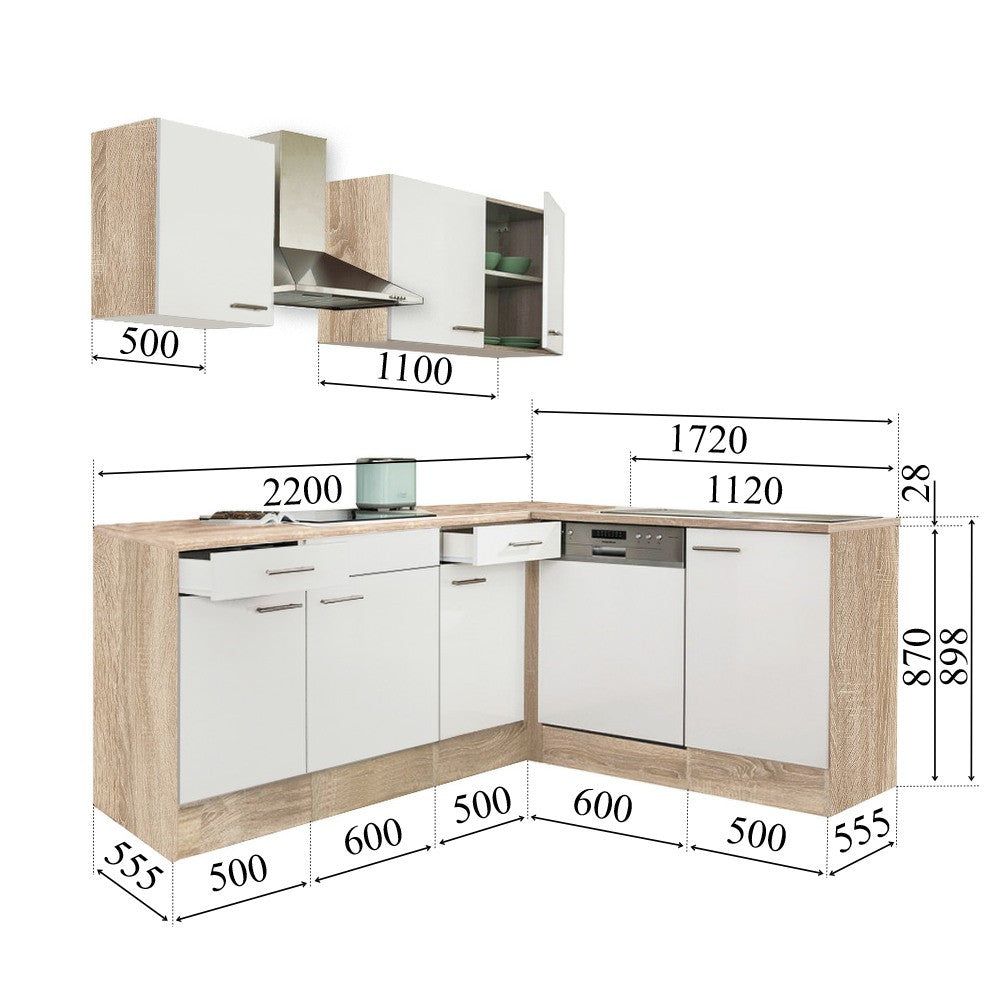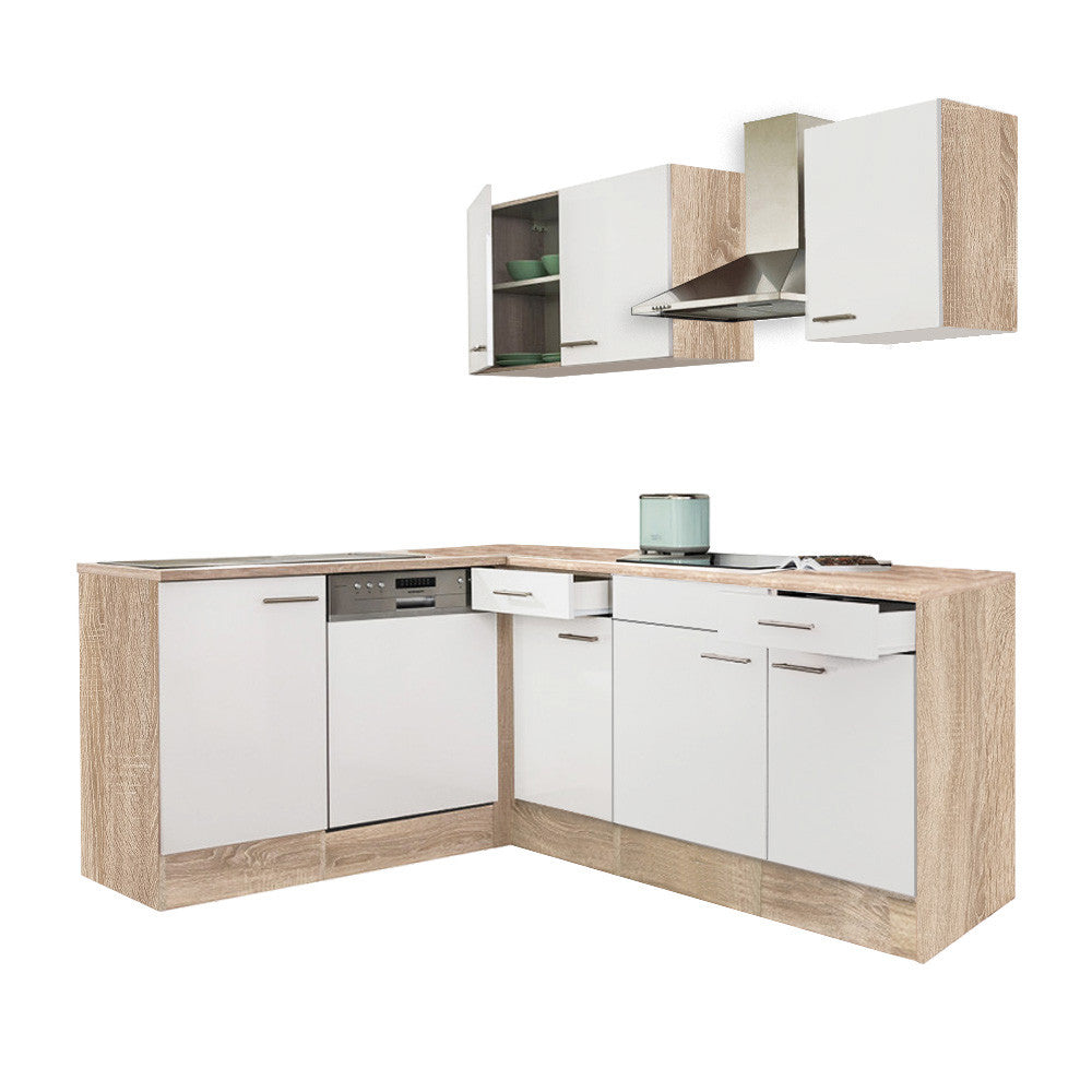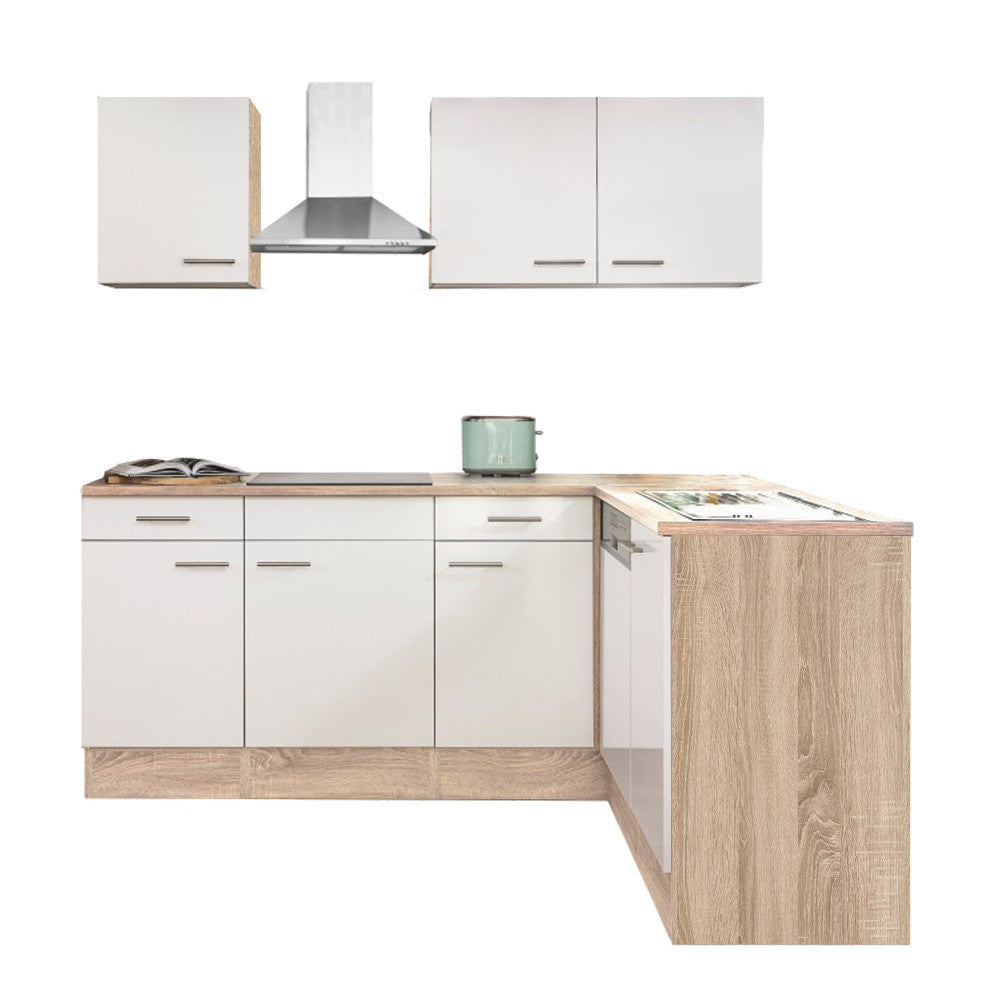Yorki 220 sarok konyhablokk sonoma tölgy korpusz, selyemfényű fehér fronttal. A tökéletes konyha megteremtője!