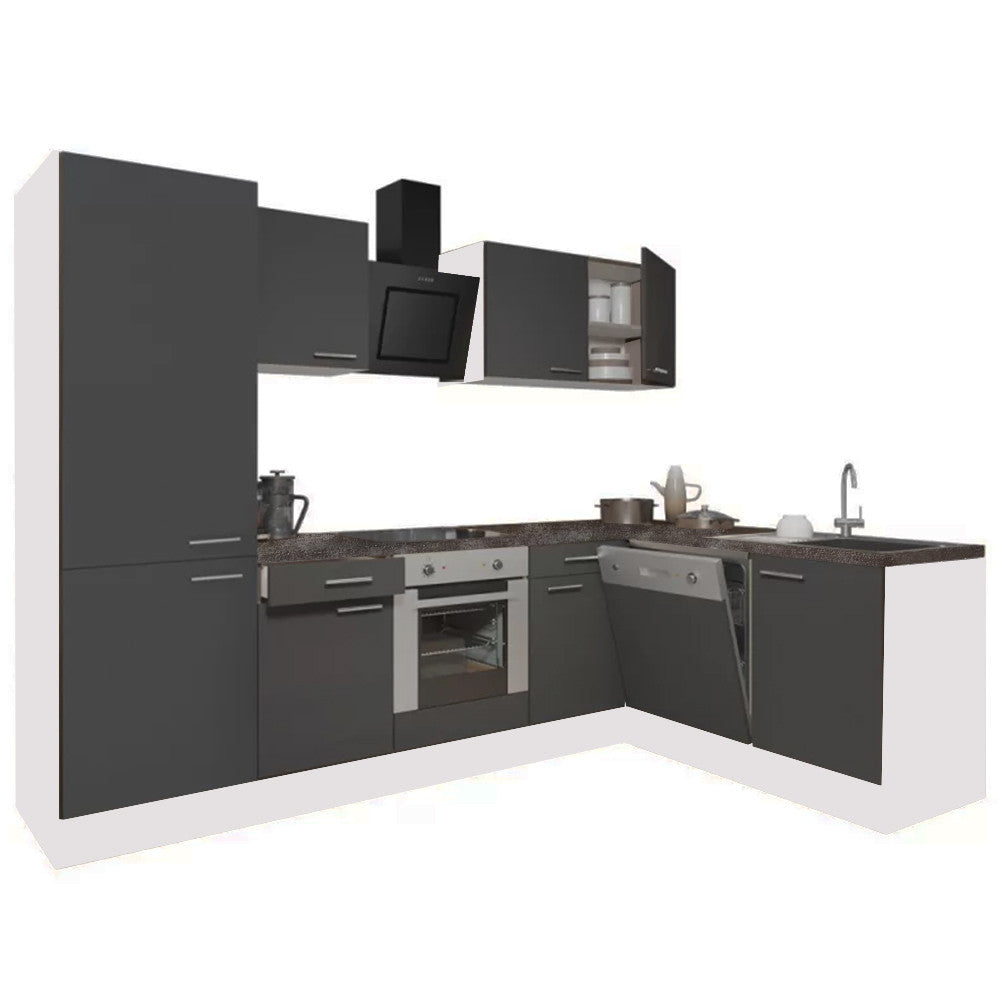 Yorki 280 sarok konyhablokk fehér korpusz, selyemfényű antracit fronttal. A tökéletes konyha megteremtője!