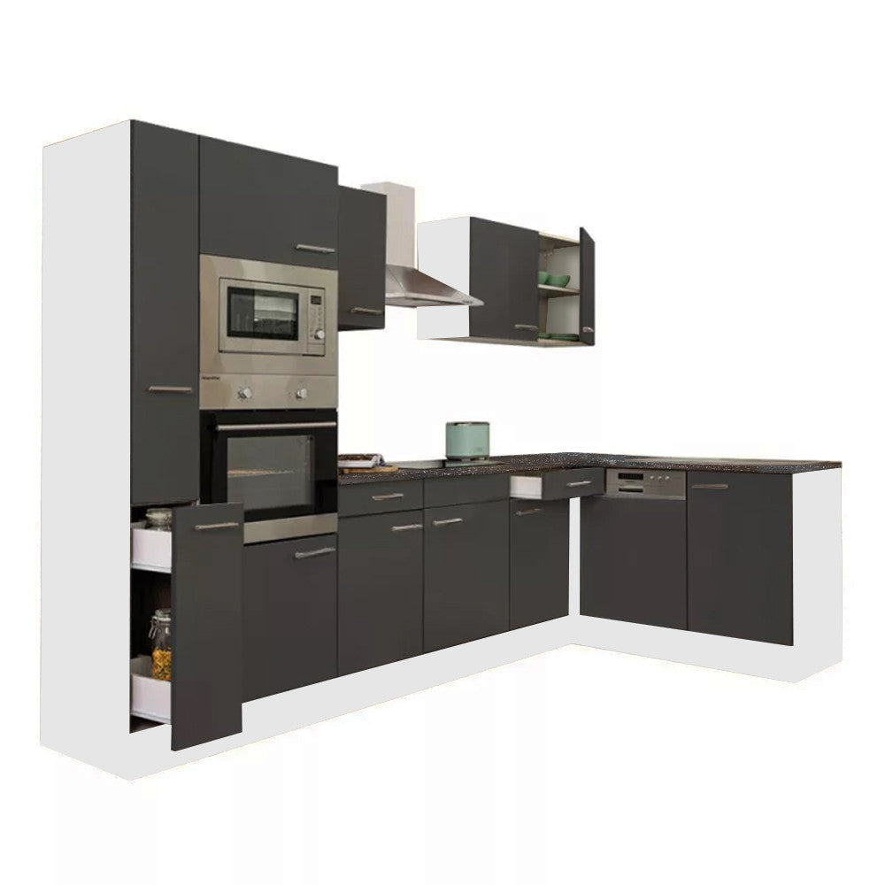 Yorki 310 sarok konyhablokk fehér korpusz, selyemfényű antracit fronttal. A tökéletes konyha megteremtője!