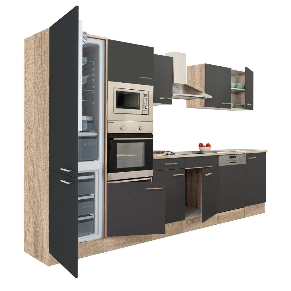 Yorki 340 konyhabútor sonoma tölgy korpusz,selyemfényű antracit fronttal alulfagyasztós hűtős szekrénnyel