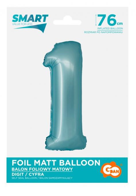 Kék 1-es Light Blue Mat szám fólia lufi 76 cm, J-MLG158854