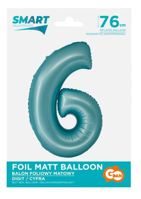 Kék 6-os Light Blue Mat szám fólia lufi 76 cm, J-MLG158953
