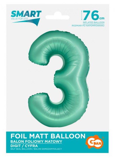 Menta 3-as Mint Mat szám fólia lufi 76 cm, J-MLG158533