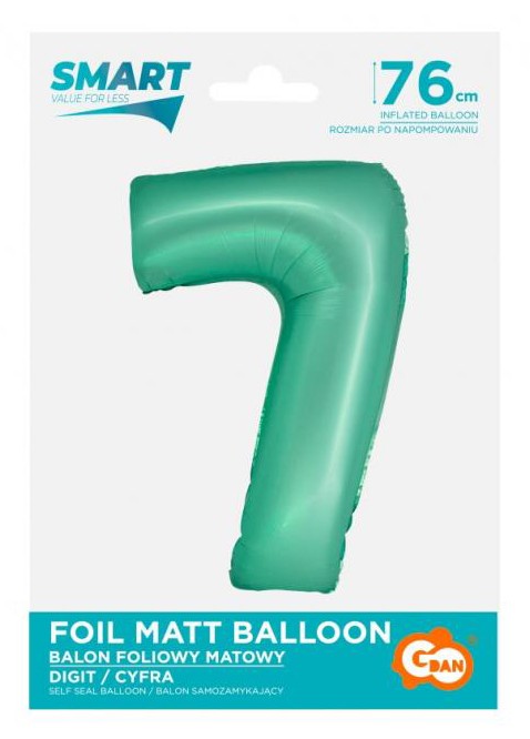 Menta 7-es Mint Mat szám fólia lufi 76 cm, J-MLG158625