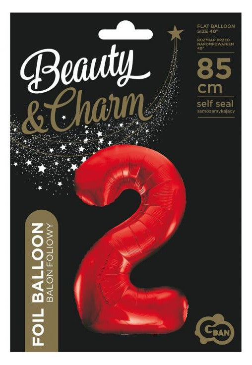 Piros 2-es Red szám fólia lufi 85 cm, J-MLG120561