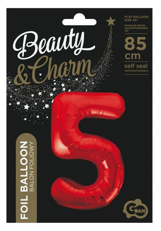 Piros 5-ös Red szám fólia lufi 85 cm, J-MLG120622