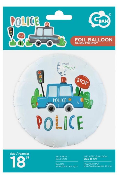 Rendőr Beep fólia lufi 46 cm, J-MLG170948