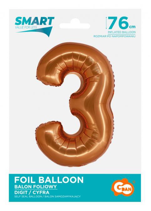 Réz 3-as Copper szám fólia lufi 76 cm, J-MLG158359