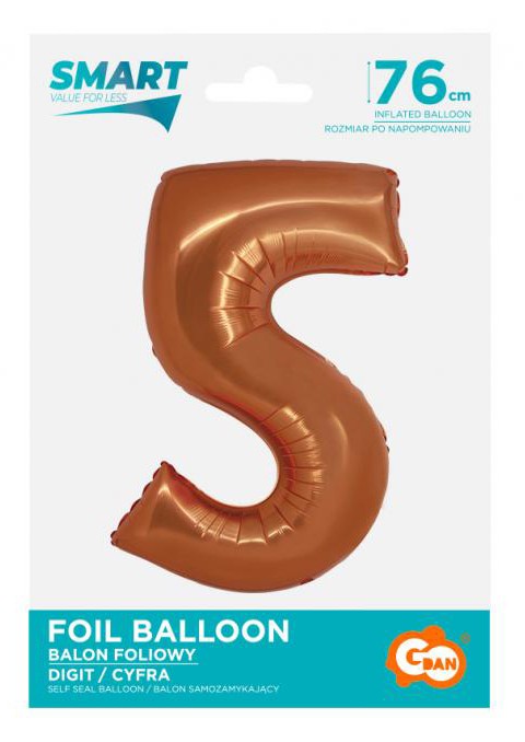 Réz 5-ös Copper szám fólia lufi 76 cm, J-MLG158397