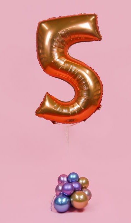Réz 5-ös szám fólia lufi 76 cm