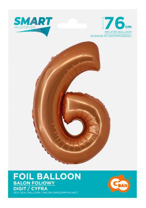 Réz 6-os Copper szám fólia lufi 76 cm, J-MLG158410