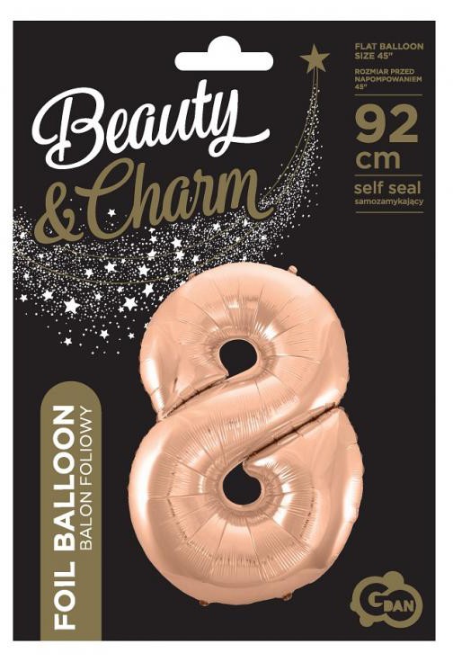 Rose Gold 8-as szám fólia lufi 92 cm, J-MLG106381