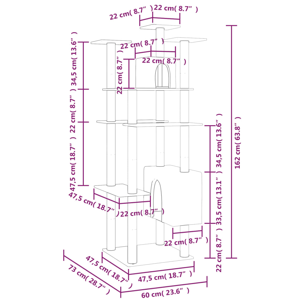 Ezzel a macskafával szőrös barátai megtapasztalhatják a luxus érzését! Macskái élvezettel kaparhatnak, mászhatnak, figyelhetik környezetüket, elbújhatnak és pihenhetnek.