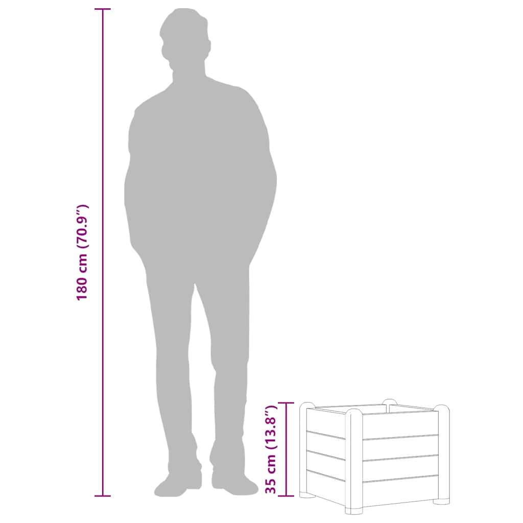 Ez a robusztus UV-, időjárás- és fagyálló PP (polipropilén) kerti ágyás beltéri és kültéri felhasználásra egyaránt alkalmas. Ez az ágyás elég mély és széles ahhoz, hogy nagymennyiségű földet tároljunk benne, valamint bőséges helyet biztosítson növényei, gyógynövényei és virágai számára.