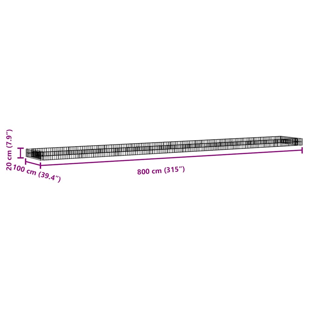 vidaXL horganyzott acél gabion magaságyás 800 x 100 x 20 cm