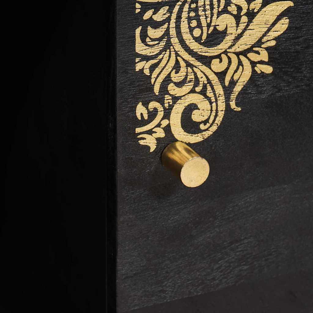 Ez a komód jól egyesíti a stílust és a funkciót, modern tárolást kínálva, ami feldob bármilyen közösségi teret. Tömör mangófából készült, így simán beilleszthető a nappaliba vagy az étkezőbe. Az arany minták és sárgaréz részletek szuper vonzóvá teszik, jól illeszkedve a modern dizájnhoz. Akár díszítőelemnek, akár a már meglévő dekorhoz igazodik, ez a komód igazodik a mai háztulajdonos igényeihez.