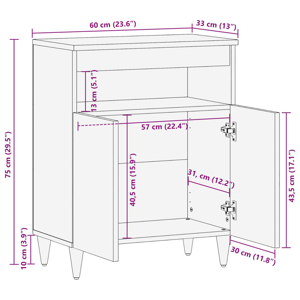 vidaXL Tároló szekrények Sokszínű 60 x 33,5 x 75 cm Tömör Mangófát