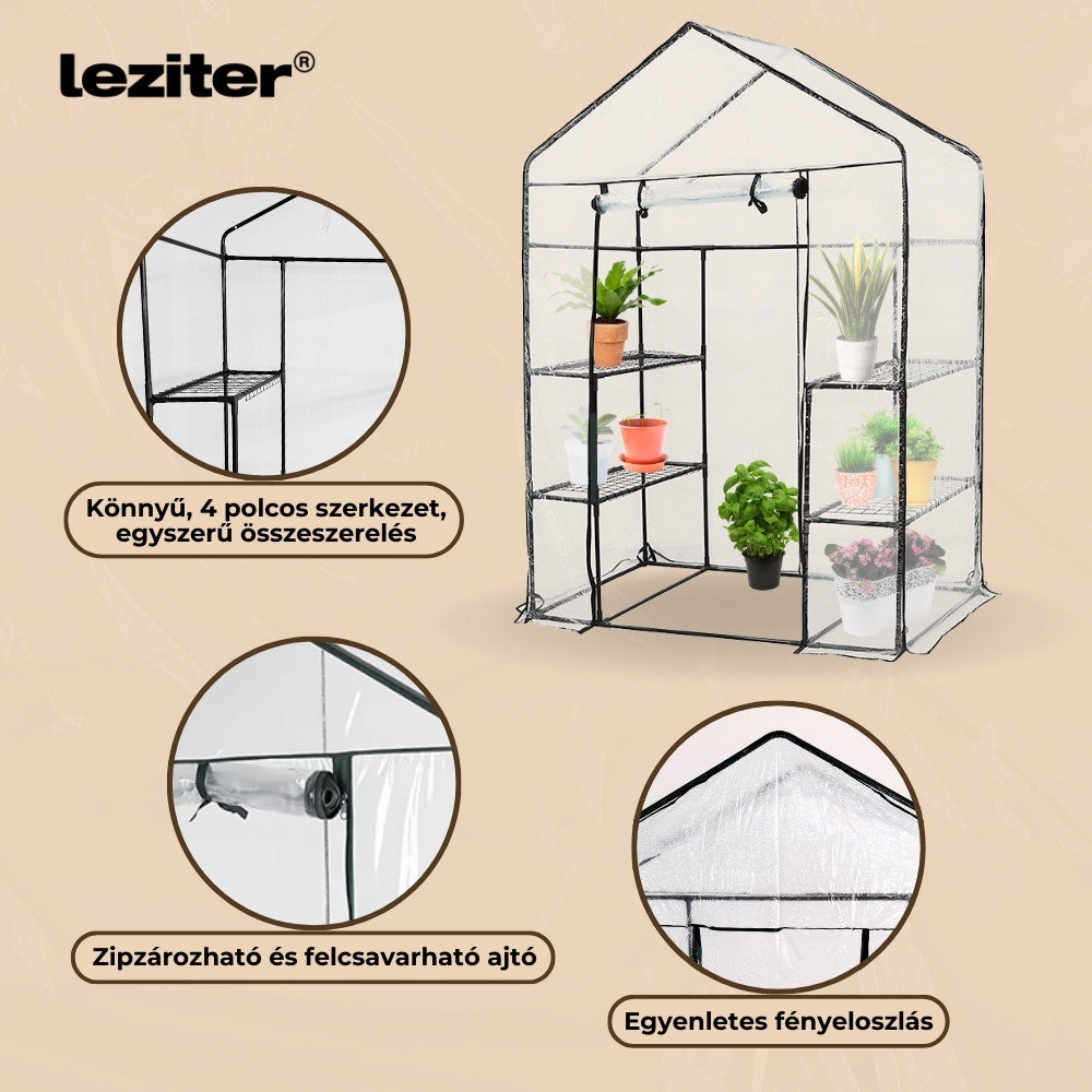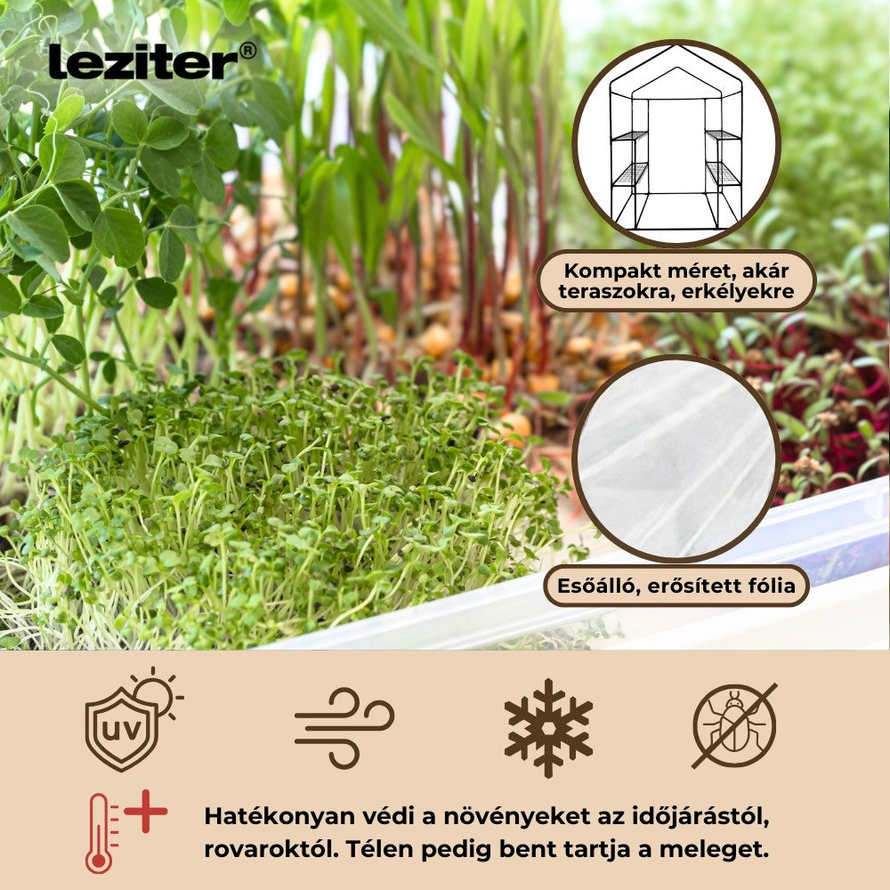 Tökéletes választás, ha korlátozott hely áll rendelkezésre, de szeretnél saját növényeket nevelni! A Leziter Balkon melegház ideális megoldás kisebb kertekbe, teraszokra vagy erkélyekre, hiszen kompakt kialakítása ellenére tágas belső teret biztosít a növényeknek.