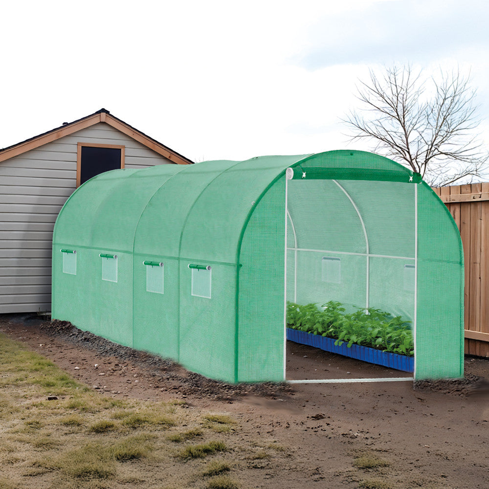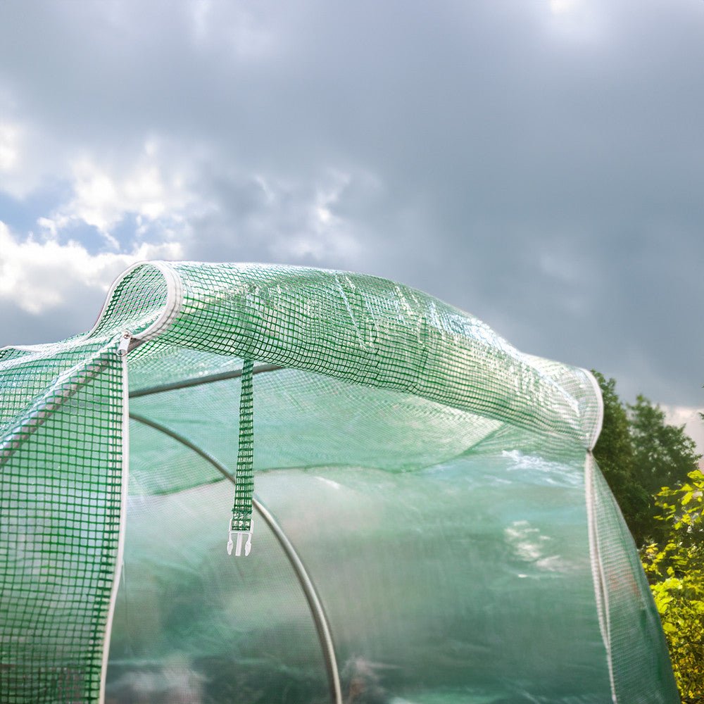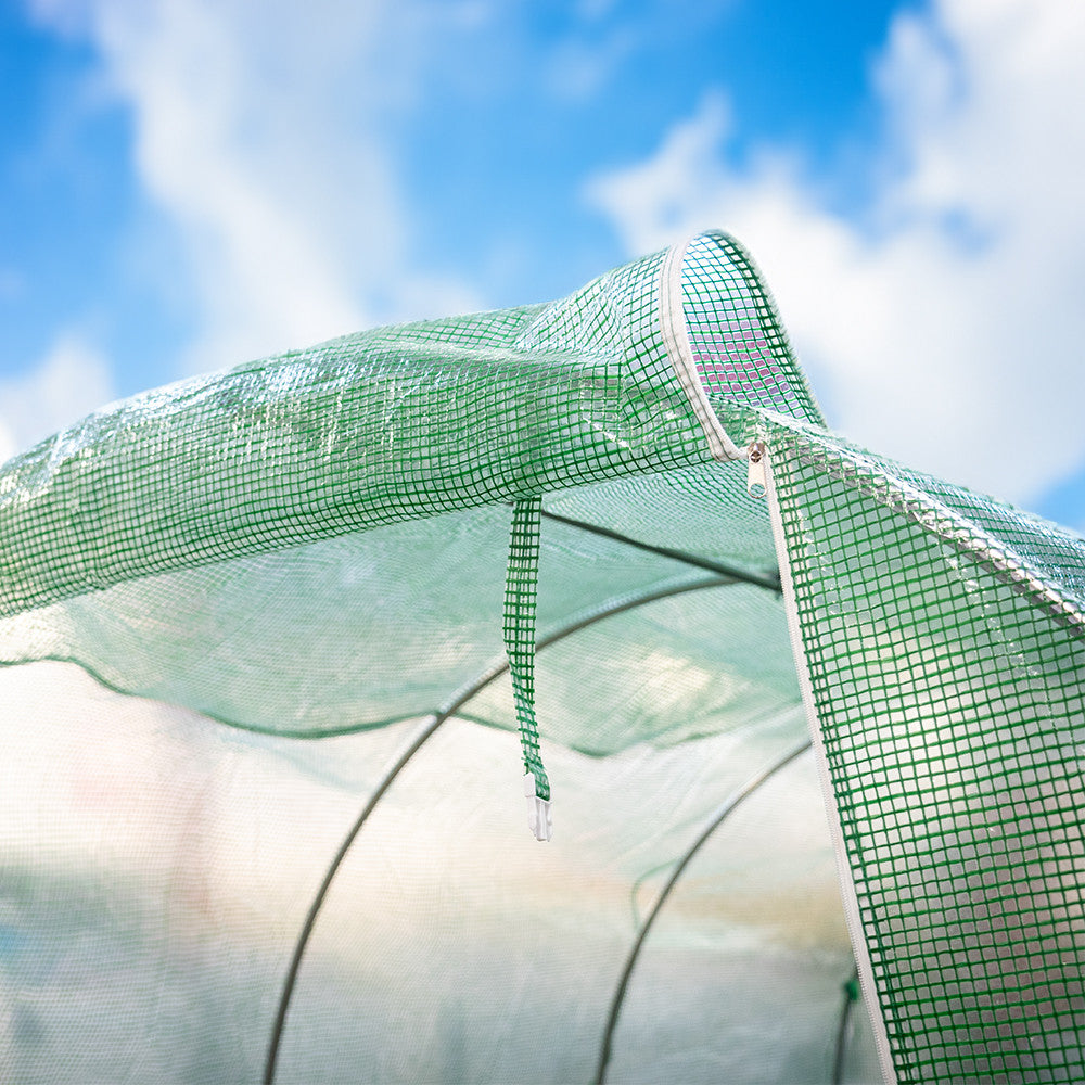 A modern fóliasátor praktikus, felhajtható ajtóval van ellátva, ami egyszerűvé teszi a belépést. A sátor 8 oldalsó szellőzőnyílása hálóval van ellátva, hogy megakadályozza a rovarok bejutását, miközben biztosítja a megfelelő légáramlást. Az ablakok segítik a nedvesség szabályozását, így növelve a terméshozamot. A fóliasátor bármilyen időjárási körülmények között használható, így ideális megoldás a kertben vagy a telken történő növénytermesztéshez.