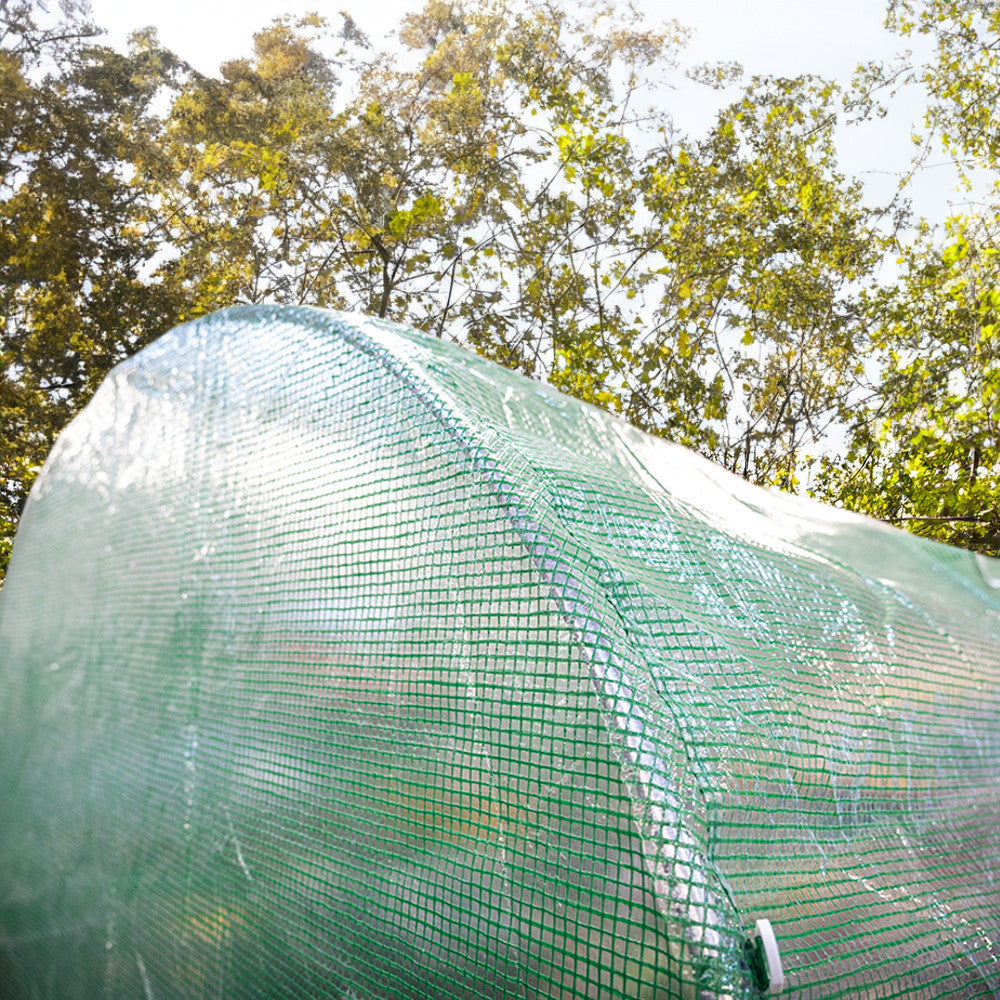 3. Stabil szerkezet: A horganyzott acélból készült váz ellenáll a korróziónak. Az oldalfalak végződése lehetővé teszi a talajjal való lefedést vagy kövekkel való nehezítést, ami növeli a szerkezet stabilitását.
