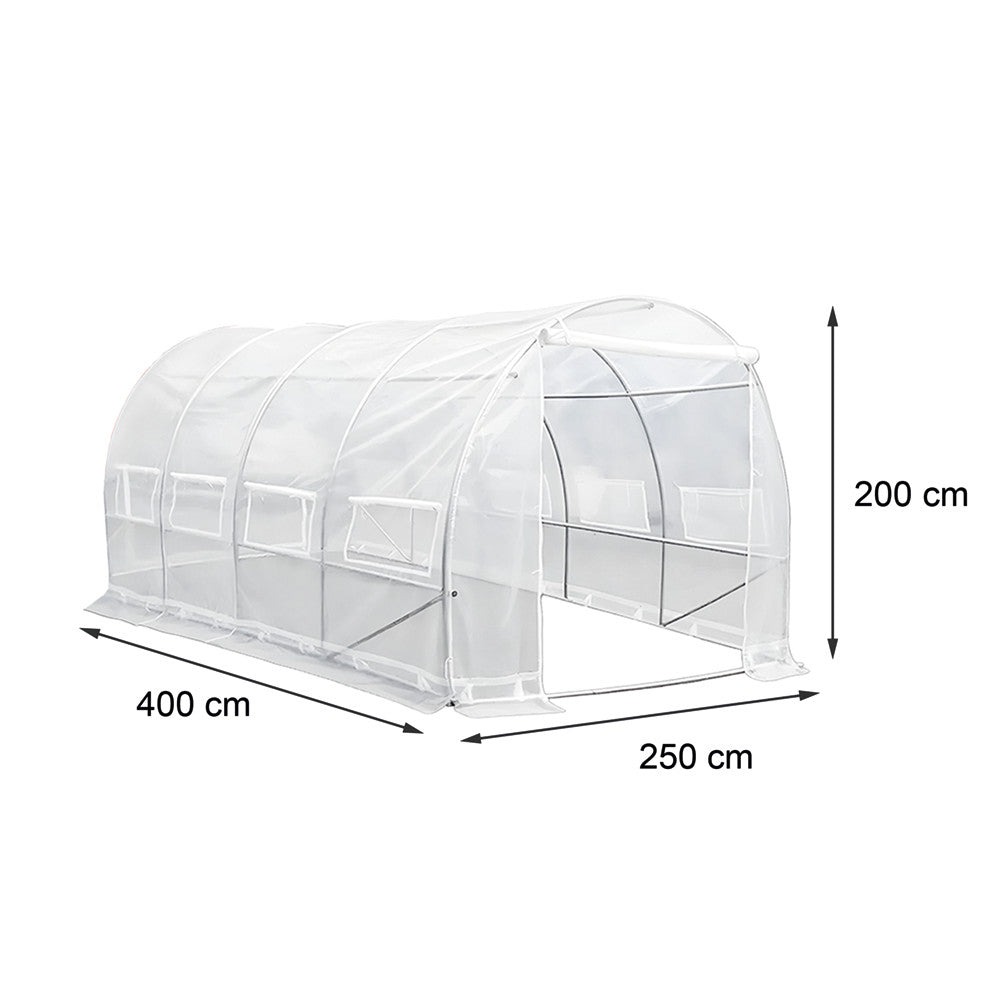 A modern fóliasátor praktikus, felhajtható ajtóval van ellátva, ami egyszerűvé teszi a belépést. A sátor 8 oldalsó szellőzőnyílása hálóval van ellátva, hogy megakadályozza a rovarok bejutását, miközben biztosítja a megfelelő légáramlást. Az ablakok segítik a nedvesség szabályozását, így növelve a terméshozamot. A fóliasátor bármilyen időjárási körülmények között használható, így ideális megoldás a kertben vagy a telken történő növénytermesztéshez.