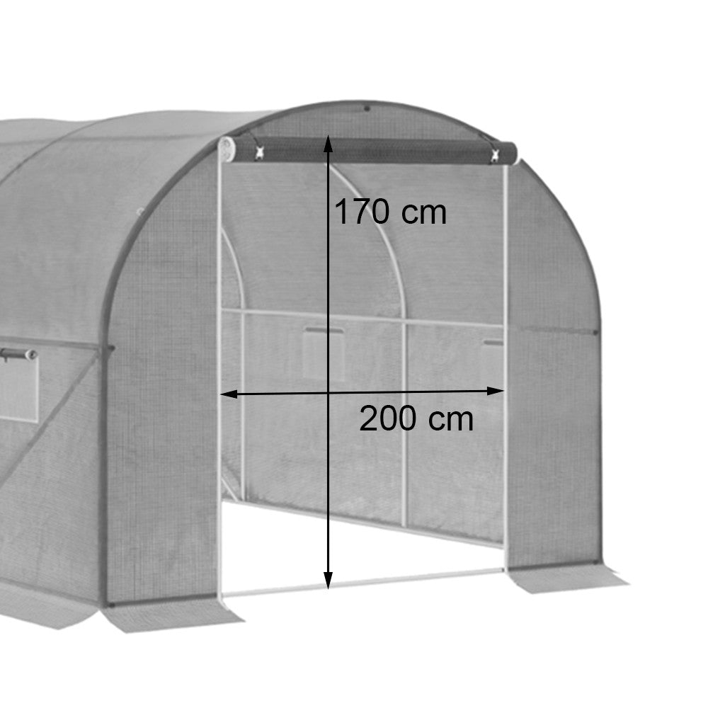 A modern fóliasátor praktikus, felhajtható ajtóval van ellátva, ami egyszerűvé teszi a belépést. A sátor 8 oldalsó szellőzőnyílása hálóval van ellátva, hogy megakadályozza a rovarok bejutását, miközben biztosítja a megfelelő légáramlást. Az ablakok segítik a nedvesség szabályozását, így növelve a terméshozamot. A fóliasátor bármilyen időjárási körülmények között használható, így ideális megoldás a kertben vagy a telken történő növénytermesztéshez.