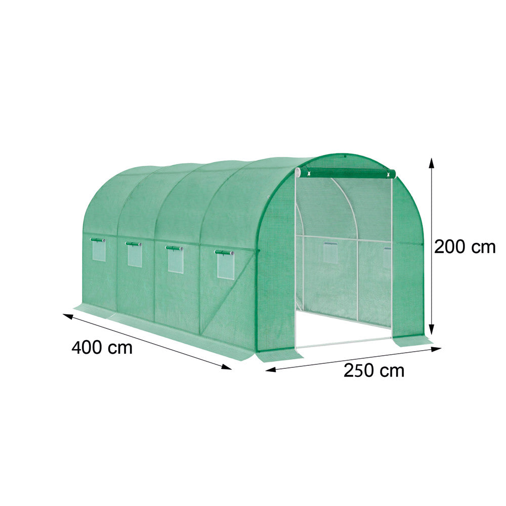 A fóliasátor 200x250x400 cm-es méretének köszönhetően bőséges helyet biztosít a növényeid számára. A tartós, UV-álló fólia garantálja a hosszú élettartamot és védelmet az időjárás viszontagságai ellen. A termék váz nélkül érkezik, így a fóliát könnyedén rögzítheted bármilyen kompatibilis szerkezetre vagy meglévő vázra. A modern fólia alagút felhúzható ajtóval rendelkezik, ami jelentősen növeli a használat kényelmét. Emellett 8 hálós ablak biztosítja a megfelelő levegő keringést, miközben hatékonyan véd a nem kívánt rovarok ellen. A fóliasátor könnyen telepíthető és karbantartható, így ideális választás szezonális használatra, és hatékonyan óvja növényeidet a túlzott napsugárzástól, esőtől és széltől.
