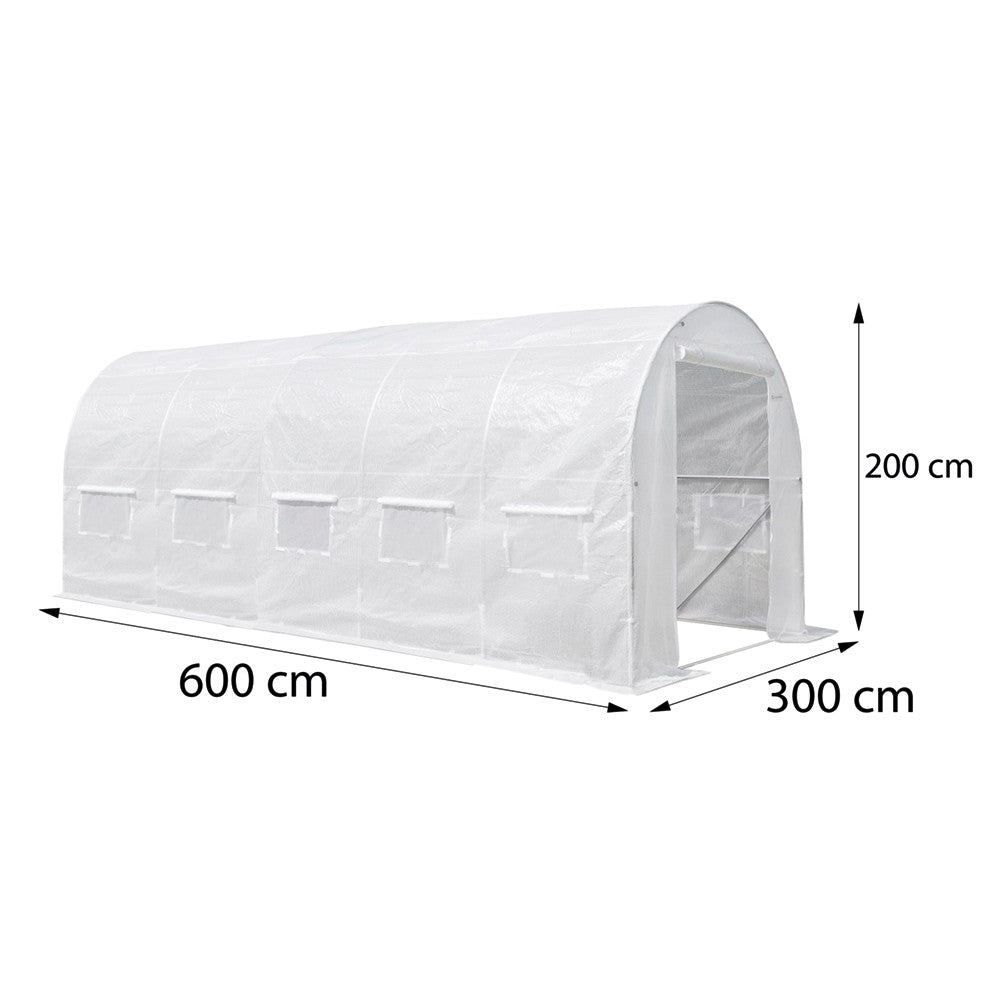 A fóliasátor 200x300x600 cm-es méretének köszönhetően bőséges helyet biztosít a növényeid számára. A tartós, UV-álló fólia garantálja a hosszú élettartamot és védelmet az időjárás viszontagságai ellen. A termék váz nélkül érkezik, így a fóliát könnyedén rögzítheted bármilyen kompatibilis szerkezetre vagy meglévő vázra. A modern fólia alagút felhúzható ajtóval rendelkezik, ami jelentősen növeli a használat kényelmét. Emellett 12 hálós ablak biztosítja a megfelelő levegő keringést, miközben hatékonyan véd a nem kívánt rovarok ellen. A fóliasátor könnyen telepíthető és karbantartható, így ideális választás szezonális használatra, és hatékonyan óvja növényeidet a túlzott napsugárzástól, esőtől és széltől.