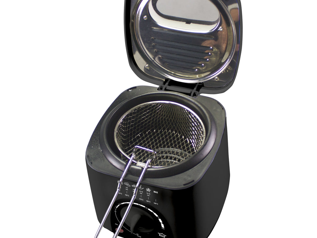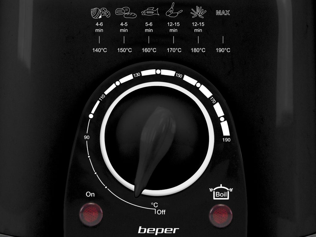 • Tapadásmentes belső, acélmentes kivehető kosár, mosható szagszűrő, működést jelző fény, állítható hőfok szabályzó 190 ° C-ig, csúszásgátló lábak.
