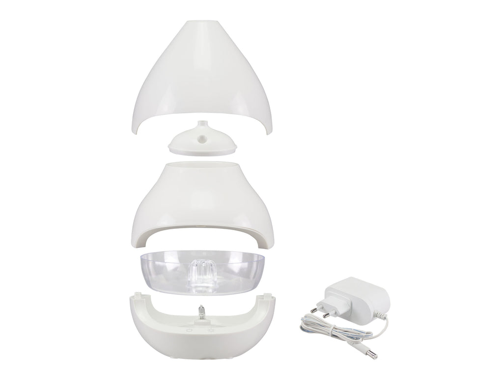 Természetes himalájai sókövekkel ellátott diffúzor, ideális a pihentető légkör megteremtéséhez. A 100 ml-es propilén műanyag tartály alkalmassá teszi ezt a diffúzort illatos és illóolajok permetezésére, míg a természetes sókövek a fény által termelt hőnek köszönhetően negatív ionokat bocsátanak ki, hozzájárulva a helyiség levegő minőségének javulásához. 5 fokozatban állítható fényerősség, alkalmas éjszakai és légköri világításnak is, mely porlasztó funkció nélkül is aktiválható