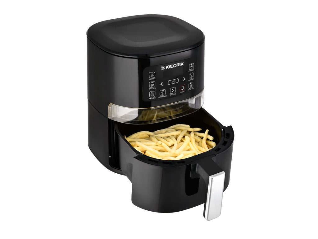 Teljesítmény 1600 W- Sütőedény 4.0 L -Szabályozható hőmérséklet 100-200°C- 60 perces időzítő-Kivehető tapadásmentes bevonatú tartály-LED kijelző-7 beépített sütő program- Gyors melegedés a légkeverésnek köszönhetően-Könnyen tisztítható