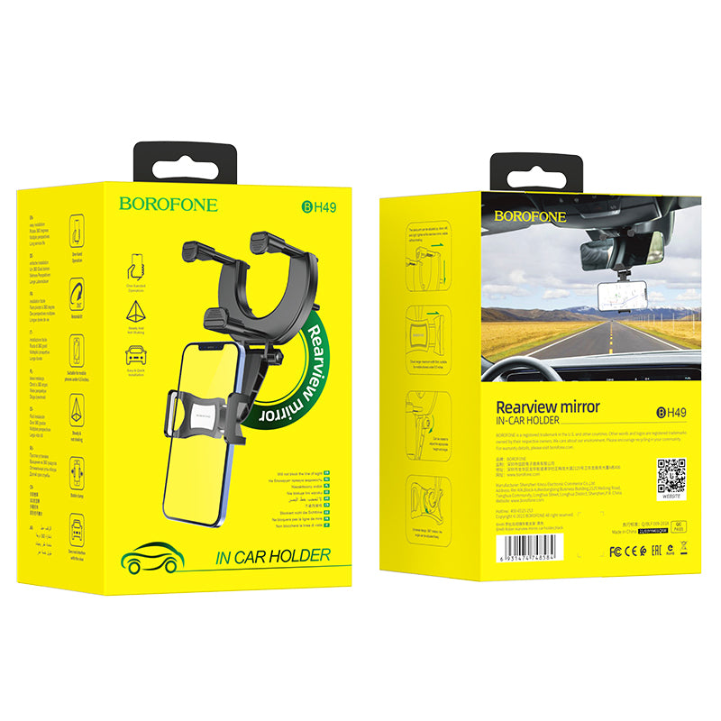 Borofone BH49 visszapillantó tükörre helyezhető univerzális mobiltelefon tartó.