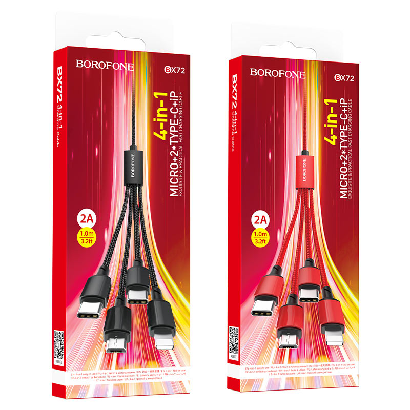 BOROFONE BX72 4 az 1-ben, töltőkábel Lightning / Micro-USB / USB-C*2, 1m, akár 2 A-ig terjedő áramerősséggel