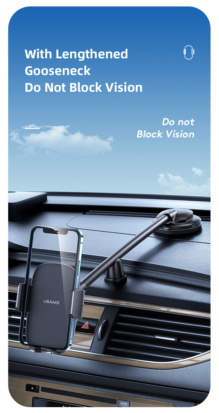 USAMS univerzális mobiltelefon tartó 4,7-7,2 colos kijelző méretig. A tartót az autó műszerfalára helyezve, nem zavarja a vezetőt a kilátásban kényelmes és praktikus használatot tesz lehetővé. A rögzítés a legmodernebb nano technológiás tapadókoronggal amely stabilan tart bármely műanyag vagy üveg felületen.