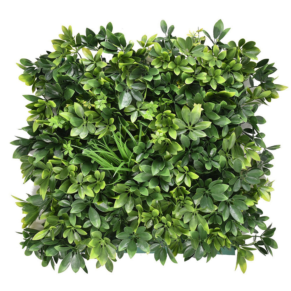 A műnövényes zöldfal 100% tisztaságú PE anyagból készült, amely kiválóan alkalmas kültéri használatra.