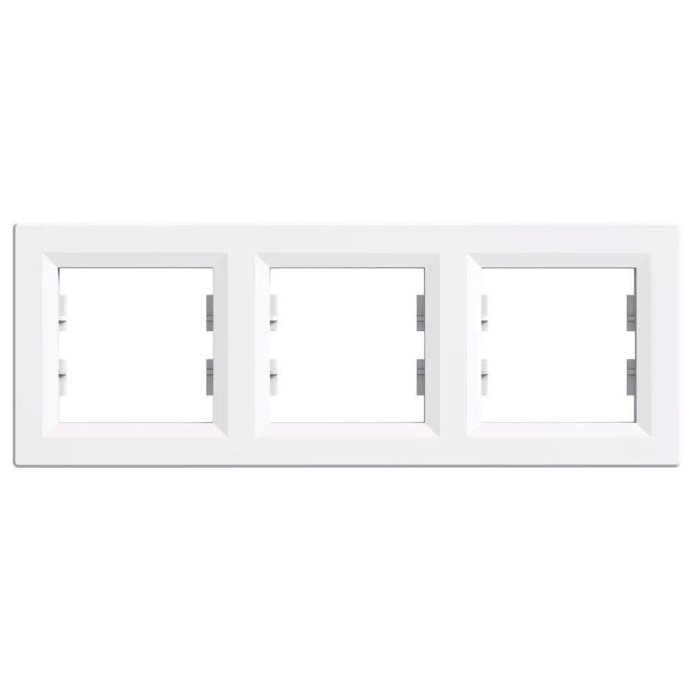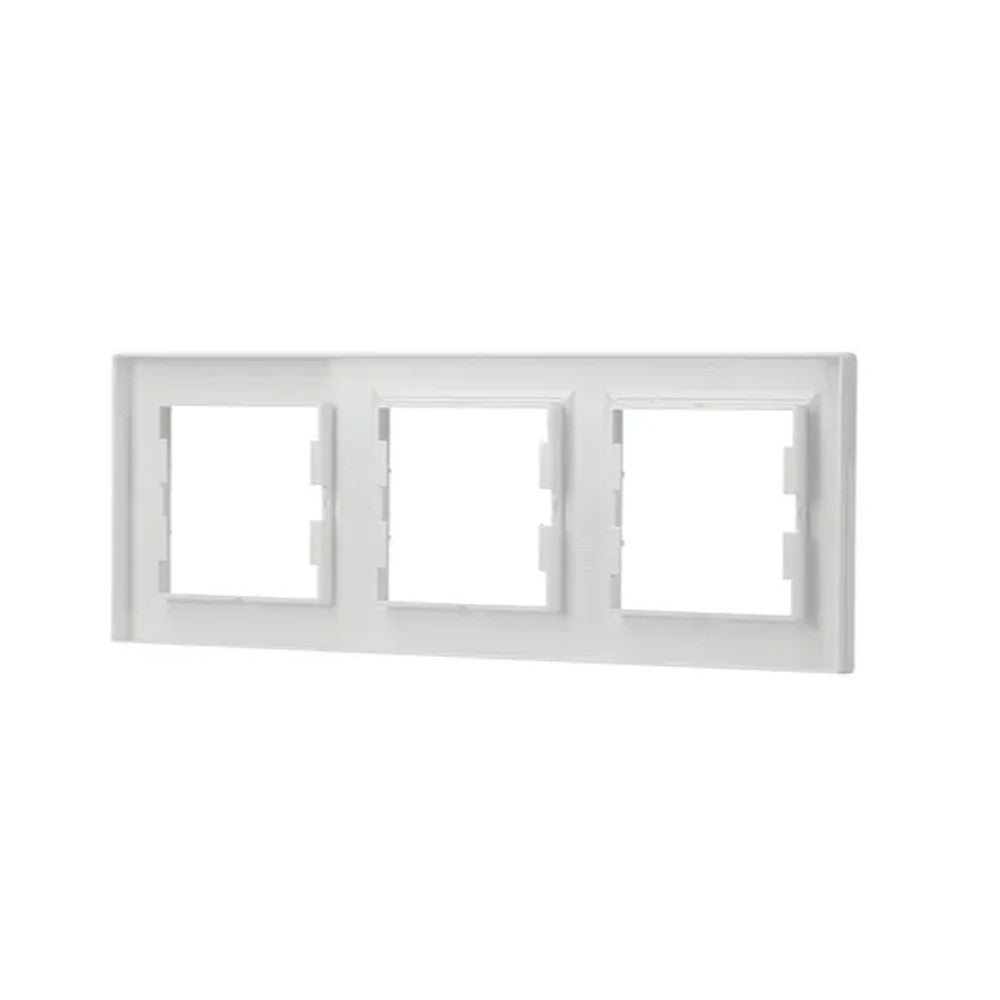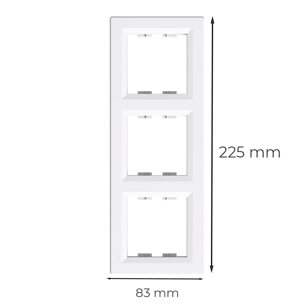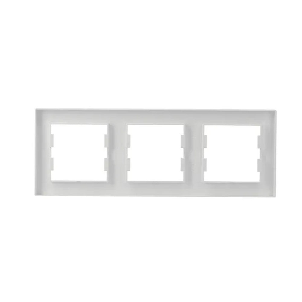 A Leziter Nova hármas keret három modul (pl. kapcsoló vagy csatlakozóaljzat) esztétikus és stabil fali rögzítésére szolgál, kompatibilis a Nova rendszer keret nélküli szerelvényeivel. A 83 × 225 mm-es, vízszintes elrendezésű, lekerekített peremű, süllyesztett kivitel letisztult megjelenést biztosít, kizárólag száraz, pormentes beltéri környezetben alkalmazható.