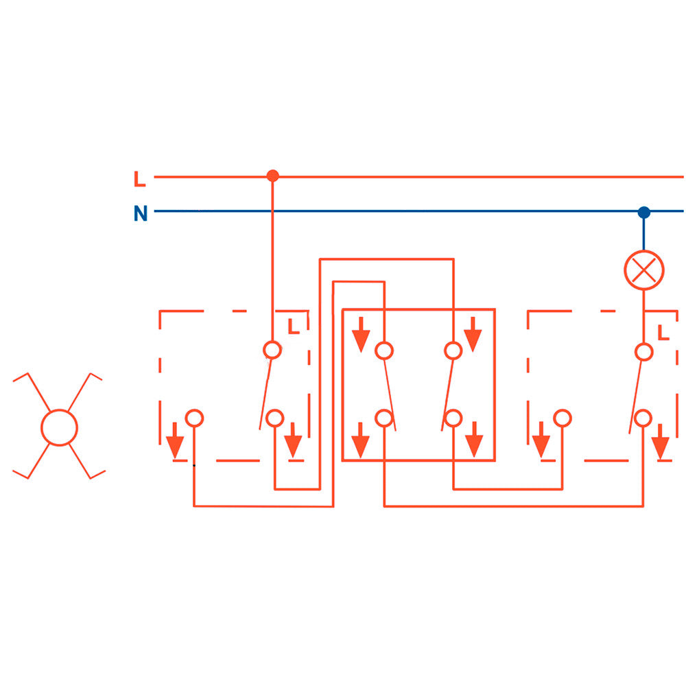 Nova keresztkapcsoló 10A 250V 107 fehér – köztes kapcsoló három vagy több kapcsolási hely esetén