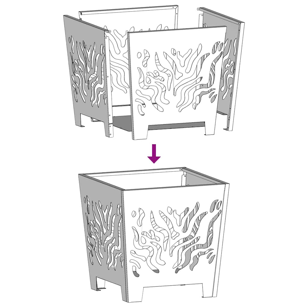 Ez a modern, négyzet alakú tűzrakó barátságos légkört hoz a balkonodra vagy a teraszodra. Hőálló acélból készült, dizájnja ötvözi a praktikusságot a kortárs stílussal, így remek választás a pihenéshez és a melegedéshez.