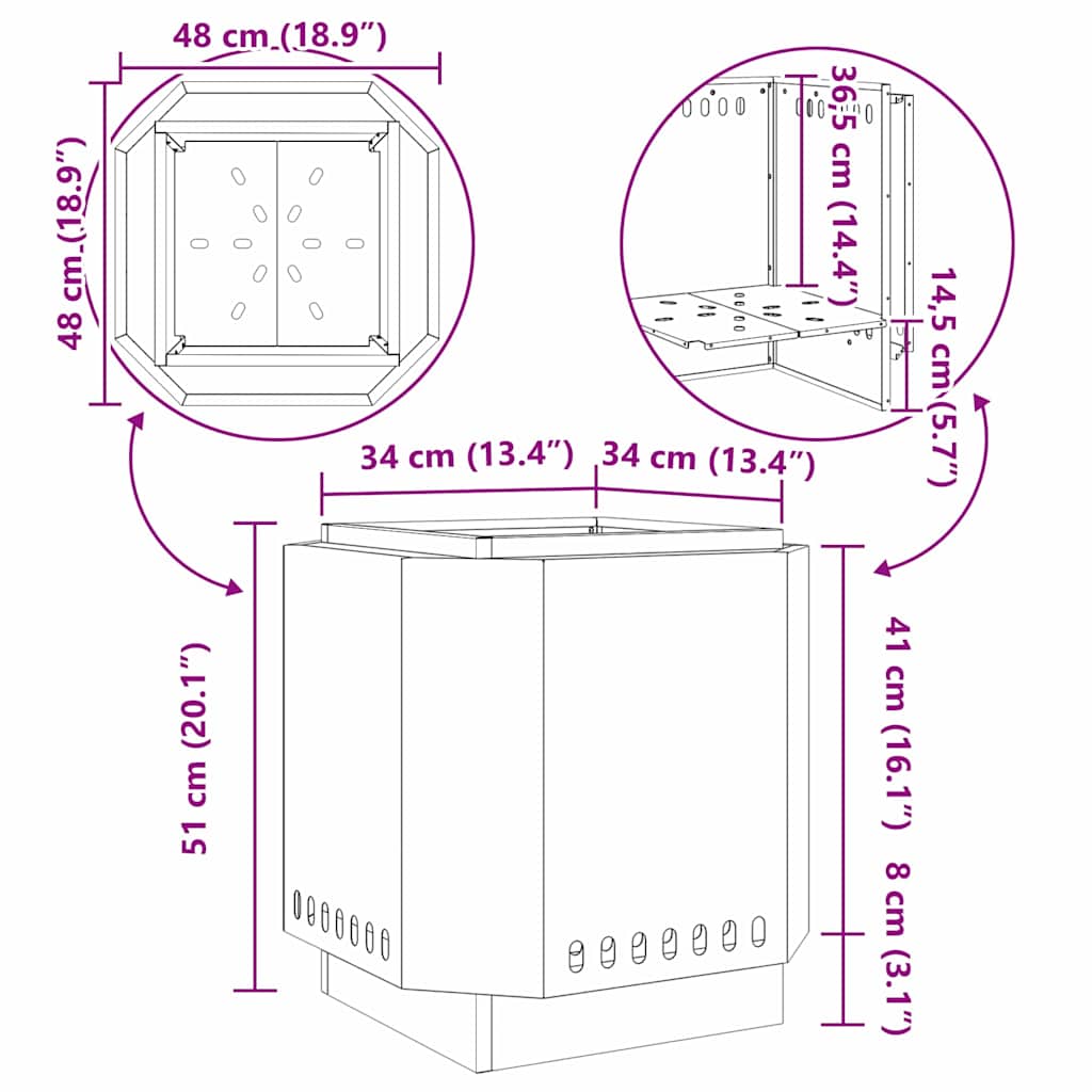 Tartós acélkivitel: A tűzrakó szilárd vázának prémium acél az alapja, ami jól bírja a kültéri viszontagságokat. Az acél sima felülete modern hatást kelt, ami illik a különféle kertekhez. Füstmentes működés: Olyan dizájnnal készült, ami minimalizálja a füstöt, így a levegő is jobb lesz. Legyen szó partikról vagy csendes pillanatok élvezetéről, ez a tűzrakó jobb élményt hoz a csillagok alatt. Hatékony hőeloszlás: A nyitott légáramok miatt ez a tűzrakó jól osztja el a hőt. Ez nemcsak a környezet melegítésében segít, hanem folyamatos égést is biztosít, így bármilyen összejövetelhez élvezetes melegséget ad. Stílusos modern design: Minimalista megjelenésével a tűzrakó jól illik a mai ízléshez. Tiszta vonalai és visszafogott díszítése elegánssá és sokoldalúvá teszi a kültéri dekorációban, anélkül, hogy elnyomnák a meglévő stílusokat. Összeszerelést igényel: Ötvene egy csavarhúzóval és két emberrel kell összerakni, ami biztonságos szerkezetté varázsolja, és megnyugtató, amikor baráti helyzetekben használod.- Szín: Fekete