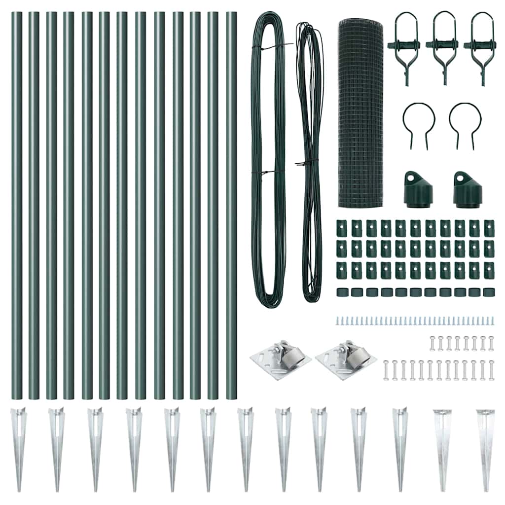 vidaXL Kerítés oszlopokkal Zöld 0,4 x 25 m Acél