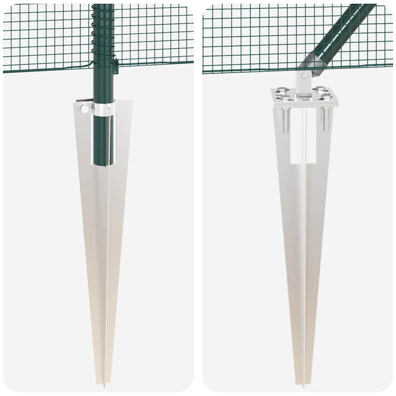 - További biztonsági funkció: Azok számára, akiknek fontos a biztonság, az összeszerelési utasítások azt javasolják, hogy a kerítés alja érintse a talajt. Ez megakadályozza bármilyen nem kívánt rést, amely fokozza a kutyák és gyerekek biztonságát, és tovább erősíti a kültéri tér védelmét a behatolásokkal szemben.