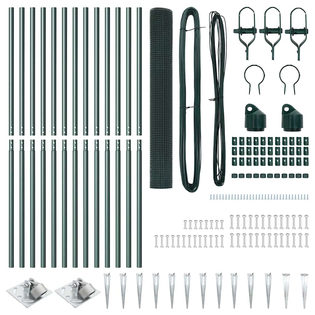 vidaXL Kerítés oszlopokkal Zöld 1.4 x 25 m Acél