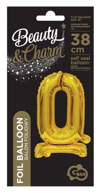 Arany B&C Gold mini 0-ás szám fólia lufi talppal 38 cm, J-MLG135022