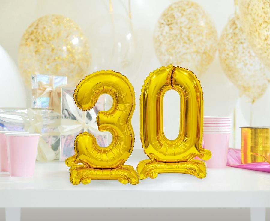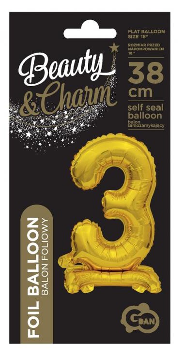 Arany B&C Gold mini 3-as szám fólia lufi talppal 38 cm, J-MLG135084
