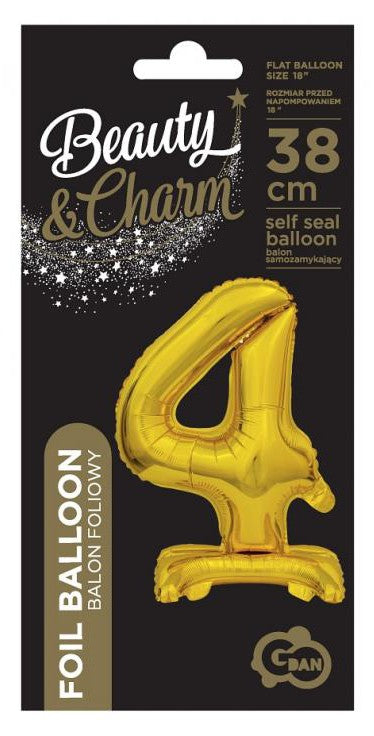 Arany B&C Gold mini 4-es szám fólia lufi talppal 38 cm, J-MLG135107
