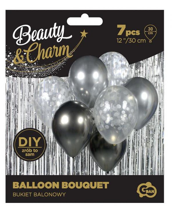 Színes Silver-Graphite léggömb, lufi szett 7 db-os 12 inch (30cm), J-MLG135381