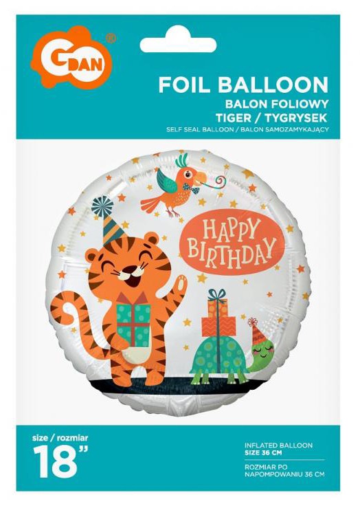 Tigris Happy Birthday Tiger fólia lufi 36 cm, J-MLG149388